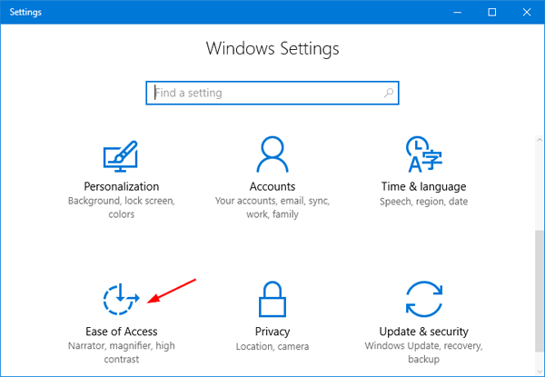 按 Windows + I 組合鍵打開“設置”應用程序,然後單擊輕鬆訪問。