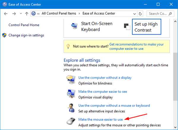 在下一個屏幕上,單擊顯示“改變鼠標的工作方式”。