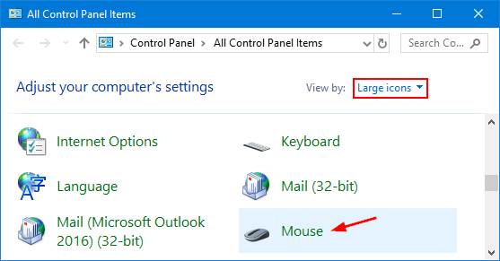 打開控制面板並切換到大圖標看法。點擊老鼠。