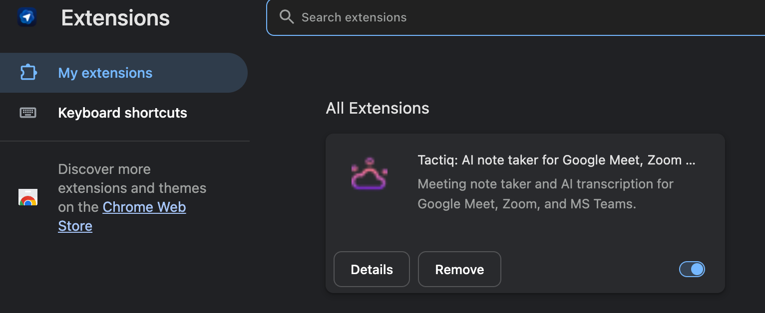 由於 Atlas 支持所有 Chrome 擴展程序,因此您可以使用 Tactiq 進行會議轉錄,就像在 Chrome 中一樣。