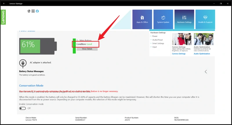 步驟 2:導航至電池頁面以檢查電池健康狀況。