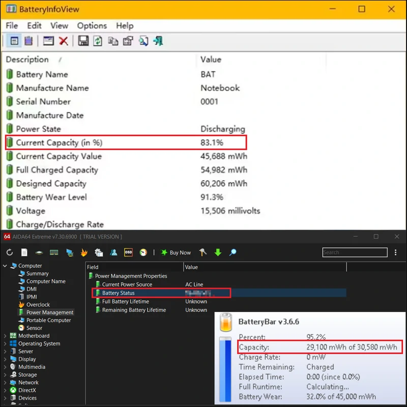 第二種方法涉及使用第三方系統檢查軟件,例如 AIDA64、BatteryInfoView 或 BatteryBar。