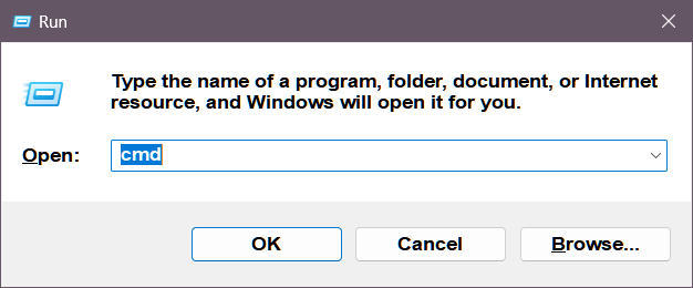 步驟1按 WIN + R 打開“運行”對話框,輸入“cmd”,然後按 Enter。