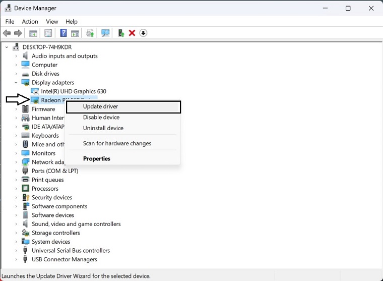 - 右鍵單擊顯卡,然後單擊更新驅動程序。