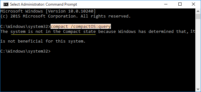 第 3 步:至壓縮 Windows 10 操作系統,執行以下命令,然後按 Enter 鍵。