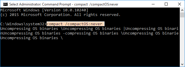 提示:您可以通過執行以下命令將其關閉解壓Windows 10操作系統: