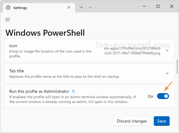 - 單擊左側欄的每個配置文件,然後打開“作為管理員運行此配置文件”右窗格的選項。