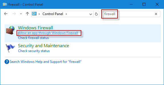2. 類型防火牆在搜索框中,然後單擊允許應用程序通過 Windows 防火牆鏈接下Windows 防火牆。