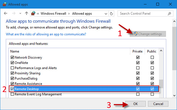 如果遠程計算機已打開 Windows 防火牆,則來自另一台計算機的傳入連接將被防火牆阻止。因此,您需要通過 Windows 防火牆允許遠程計算機上的遠程桌面。