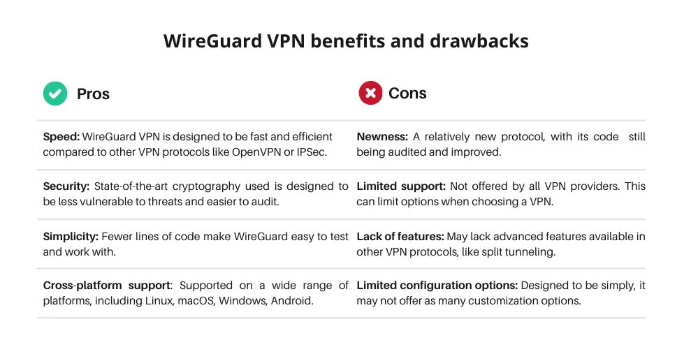 👎新事物:WireGuard VPN是一個相對較新的協議,其代碼仍在審核和改進中。因此,它可能不像其他更具建立的VPN協議那樣廣泛測試和信任。