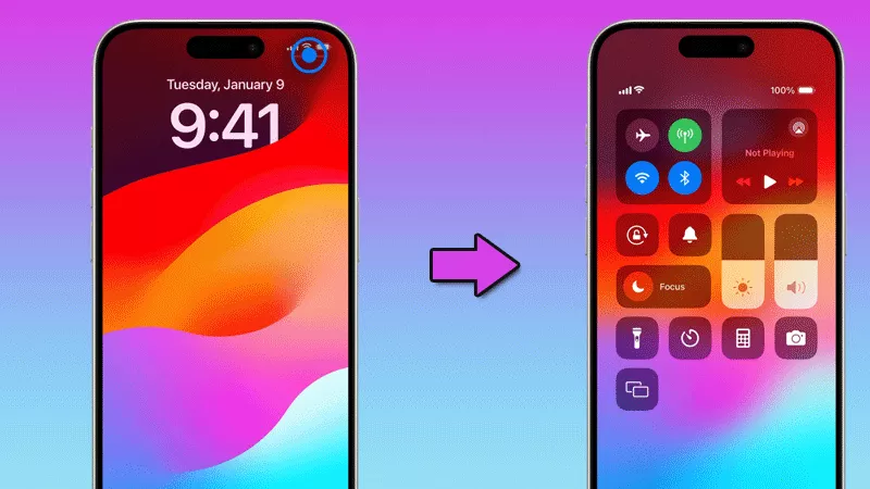 默認情況下,即使您的 iPhone 被鎖定,您也可以訪問控制中心。這對於快速調整設置特別有用,無需先解鎖 iPhone。要從鎖定屏幕訪問控制中心,只需使用上述相同的滑動手勢即可: