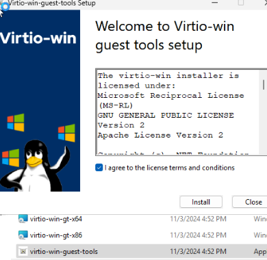 然後,安裝QEMU 訪客代理通過運行virtio-win-guest-tools.exe文件。