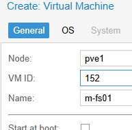 2. 一般的選項卡中,為虛擬機指定有意義的名稱和 ID。您可以保留建議的 ID 或手動輸入另一個 ID。例如,您可以使用 VM IP 地址的最後一個八位字節作為 VMID。