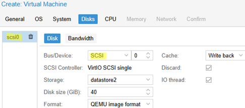 磁盤控制器類型:VirtIO SCSI 單路