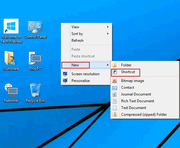 步驟1:在桌面上打開一個新的快捷方式。