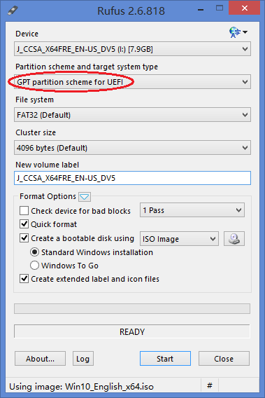 當然,網上還有一些其他的USB創建工具,例如魯弗斯。它還允許您從 Windows 10 ISO 映像創建 UEFI 或舊版可啟動 USB 安裝驅動器。