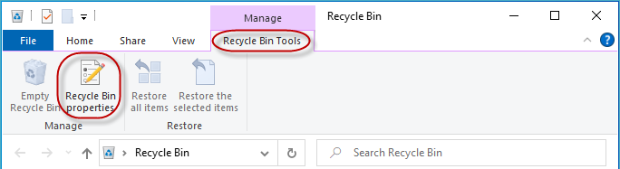 或者,打開回收站,然後選擇回收站屬性在“回收站工具”選項卡下。