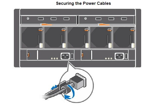 來源:Dell EqualLogic PS 系列硬件用戶手冊步驟 4. 使用鉤環緊固帶固定電源線,然後打開電源裝置上的電源開關等待幾秒鐘,讓陣列識別新的電源裝置並檢查其是否正常工作。