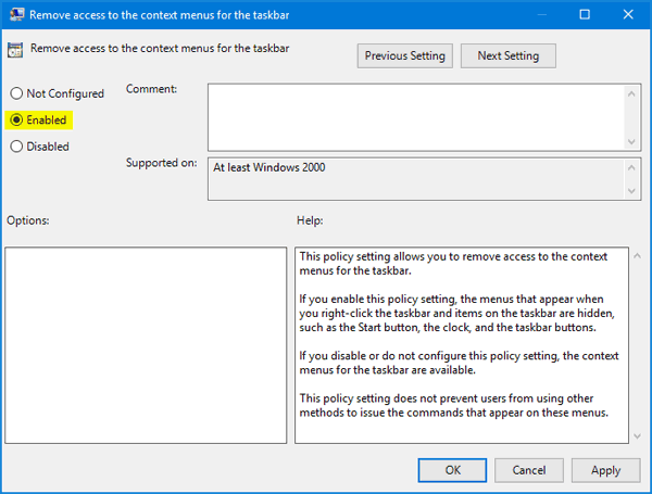 現在,您已成功禁用Windows 10 / 8/7中的任務欄右鍵單擊上下文菜單。