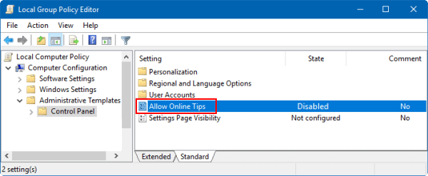 最新的 Windows 10 版本在設定應用程式.要禁用這些在線提示,