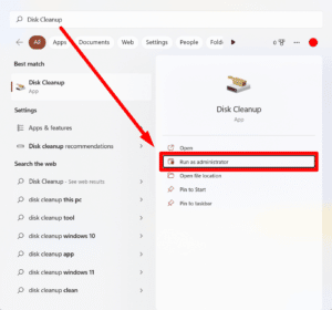 磁盤清理需要管理員權限才能正常工作。為此,請右鍵單擊“磁盤清理”快捷方式,然後從菜單中選擇“以管理員身份運行”。