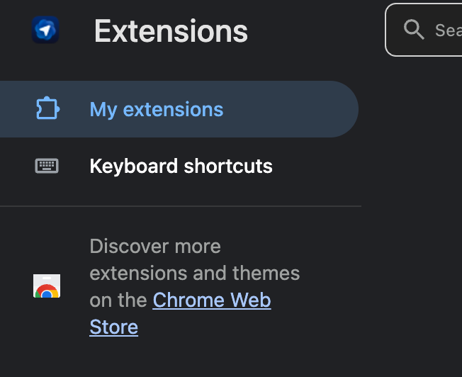 2. 在左側面板中,您將看到:“在 Chrome 網上應用店中發現更多擴展程序和主題。”