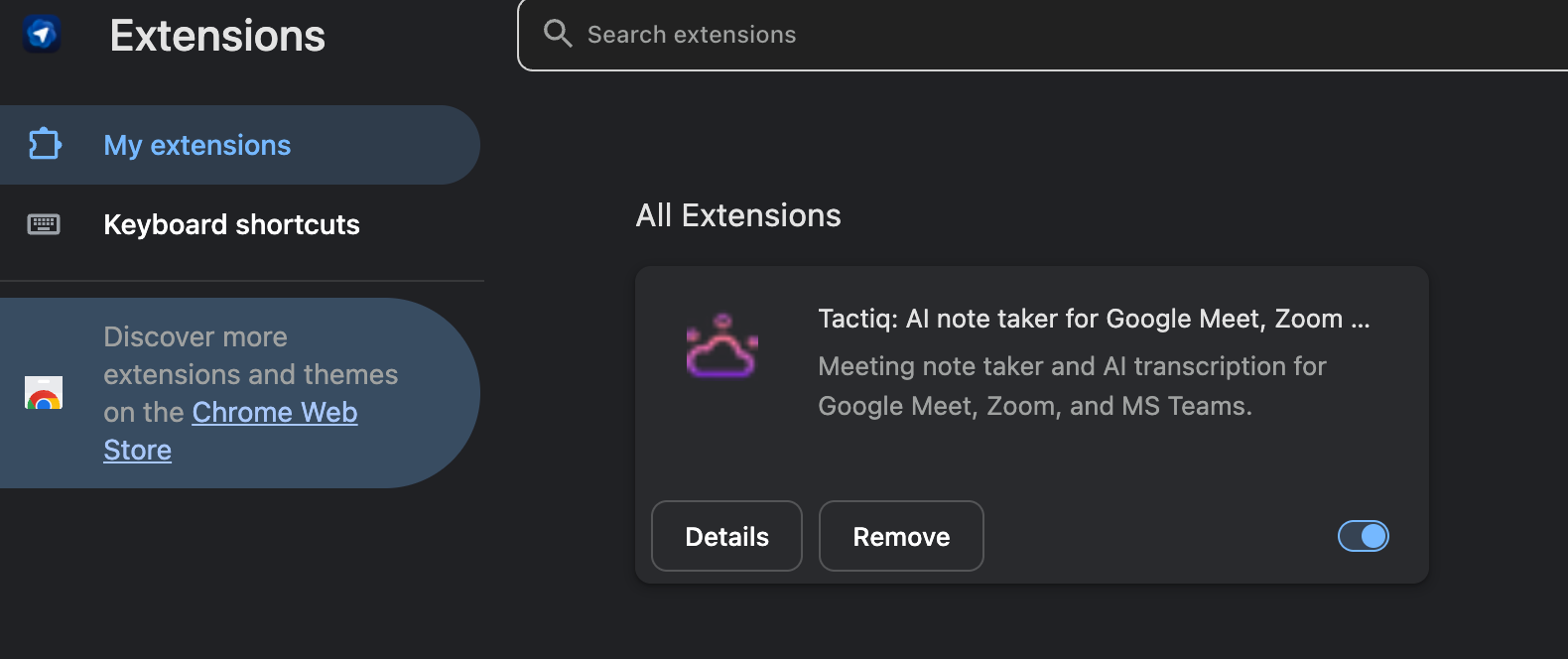 💡提示:雖然 ChatGPT Atlas 可以順利處理網頁瀏覽和 AI 任務,但您仍然需要一個專用的會議工具。Taactiq 的 Chrome 擴展 在 Google Meet、Zoom 和 Microsoft Teams 中捕獲實時記錄,立即將對話轉化為摘要和行動項目。
