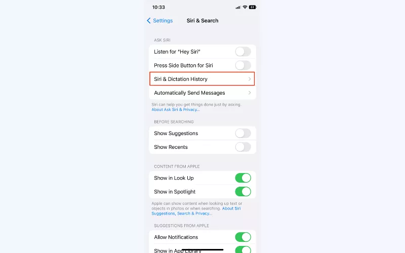 現在,讓我們了解如何清除 Siri 和聽寫歷史記錄,以從 Apple 服務器中刪除您的請求和命令。