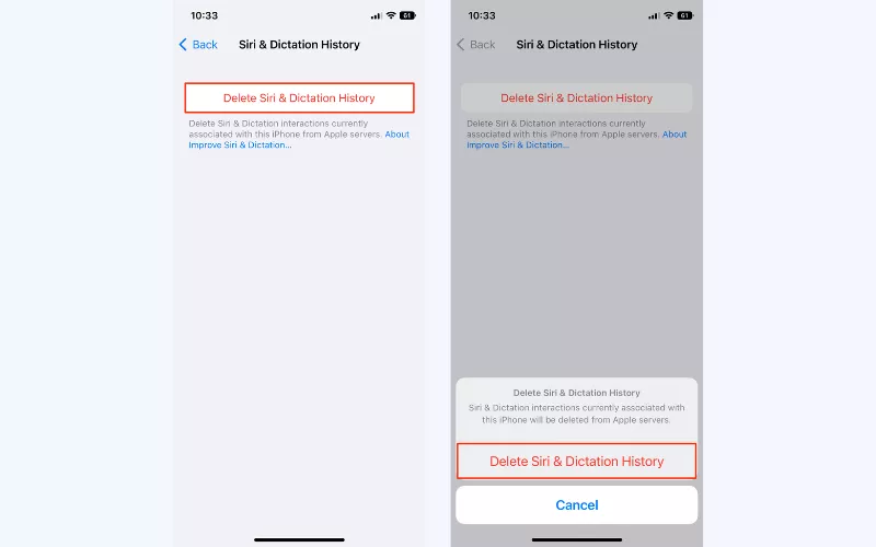 - 選擇刪除 Siri 和聽寫歷史記錄。