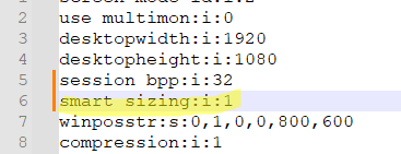 內置的另一個功能mstsc.exe使整個遠程桌面窗口適合 RDP 窗口而不需要滾動條的客戶端就是動態縮放,也稱為智能尺碼。