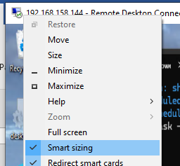 在現代版本的 RDP 客戶端中,您可以啟用智能尺碼通過在 RDP 客戶端左上角的菜單中選擇相應的選項即可。