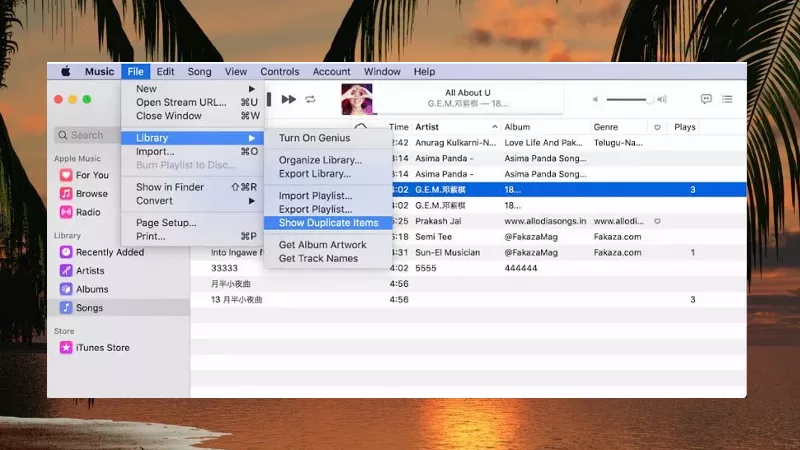 第 2 步:點擊文件 > 庫 > 顯示重複項目並且將列出所有重複的歌曲。
