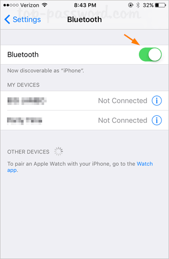 - 首先,在兩部手機上打開藍牙。只是去設定- >藍牙,切換藍牙滑動到ON位置。