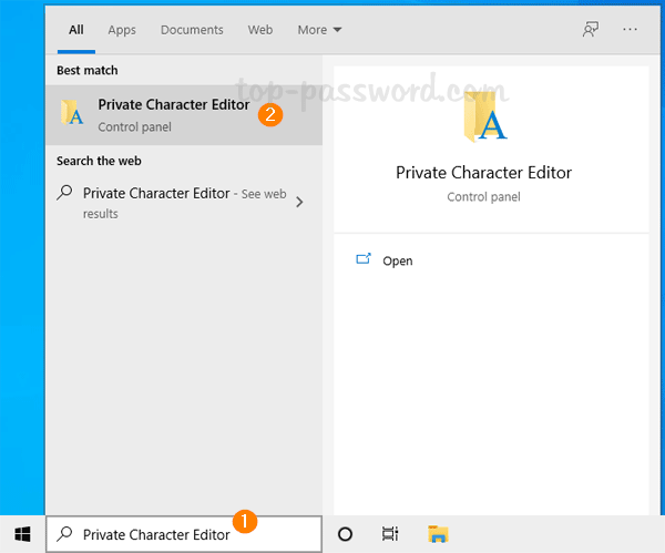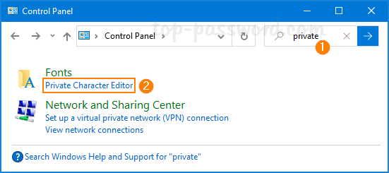 打開控制面板並輸入“私人的”,然後您可以單擊結果列表中的“私人角色編輯器”快捷方式。