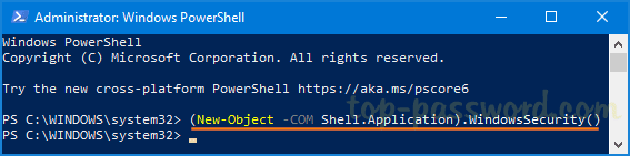 (New-Object -COM Shell.Application).WindowsSecurity()