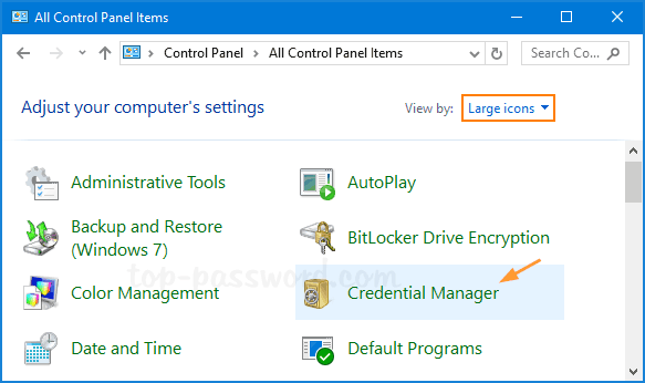 打開控制面板並設置查看方式選項大圖標,然後單擊憑證管理器。
