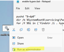 創建批處理文件啟用-hyperv.bat在桌面上輸入以下代碼: