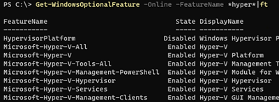 Get-WindowsOptionalFeature -Online -FeatureName *hyper*|ft