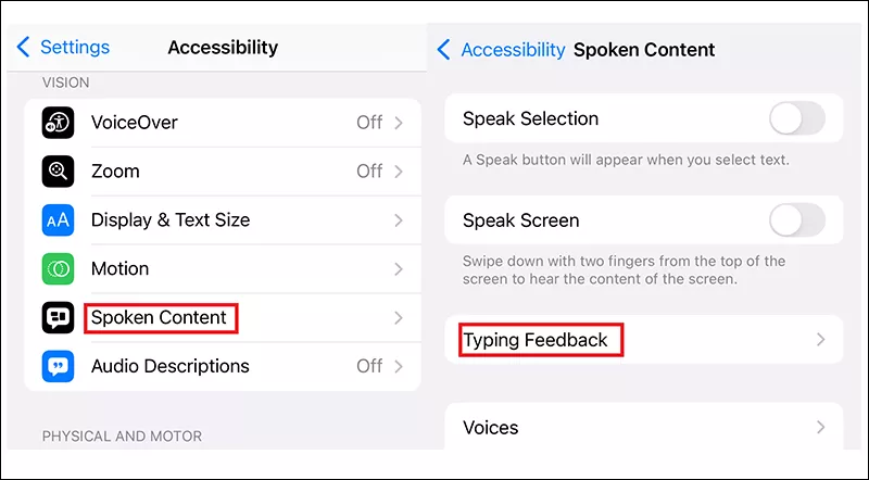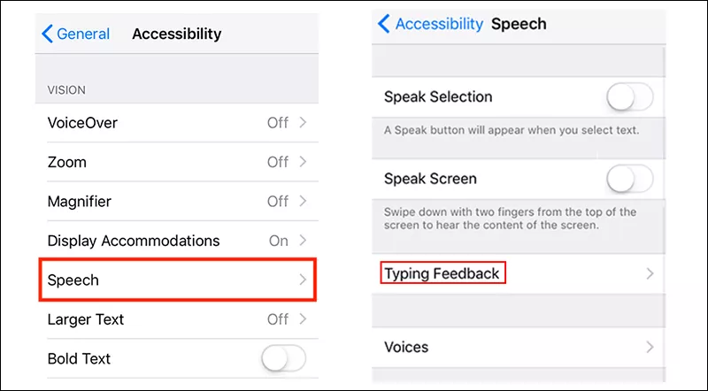步驟2:點擊語音,然後點擊打字反饋選項。