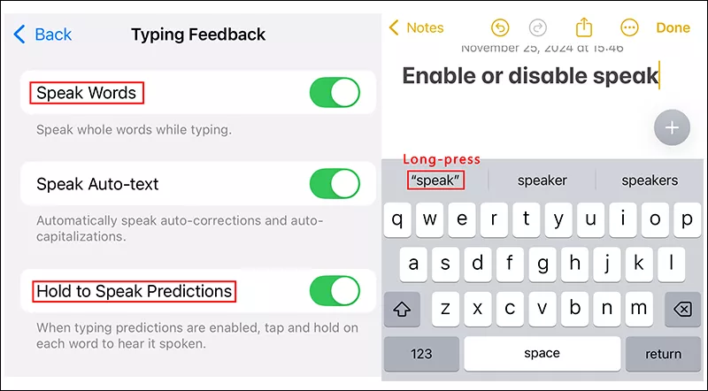 按住說話預測:按住預測的單詞,它會大聲朗讀。