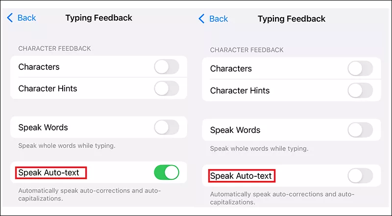步驟3:找到朗讀自動文本選項。到啟用 iPhone 朗讀自動文本功能,將開關切換至打開(綠色)位置。如果您想禁用它,請將開關切換到關閉(灰色)位置。
