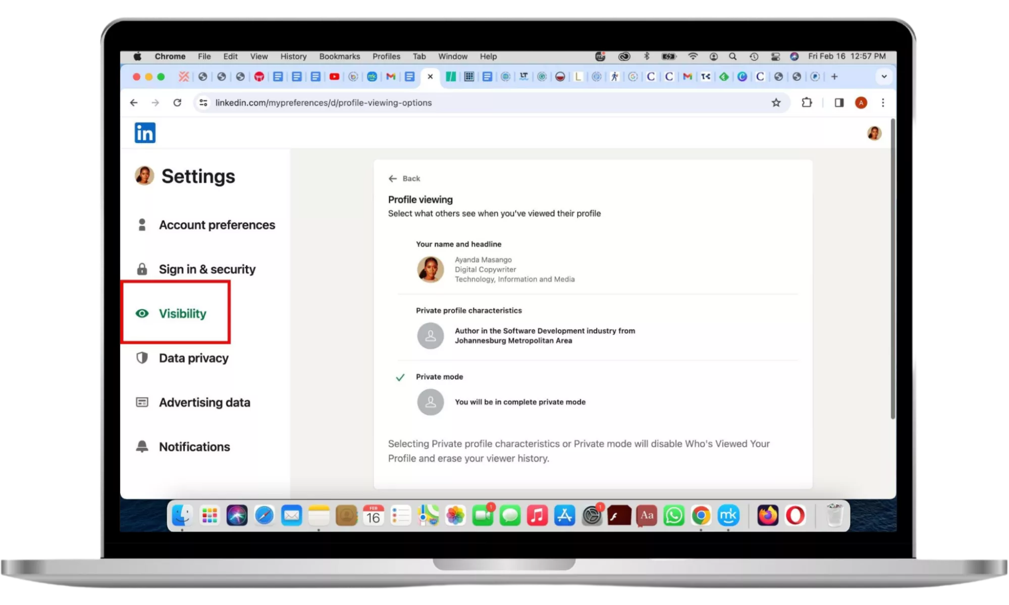 - 切換到私人LinkedIn配置文件。儘管您的前任仍然可以找到您的個人資料,但他們看到的信息將受到限制。在LinkedIn上管理您的私人和可見性設置,您可以自定義人們可以看到的信息,例如您的連接,關注者,活動狀態等。