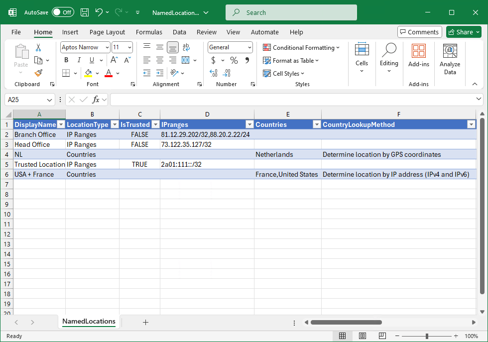 Export Conditional Access Named Locations policies to CSV file.
