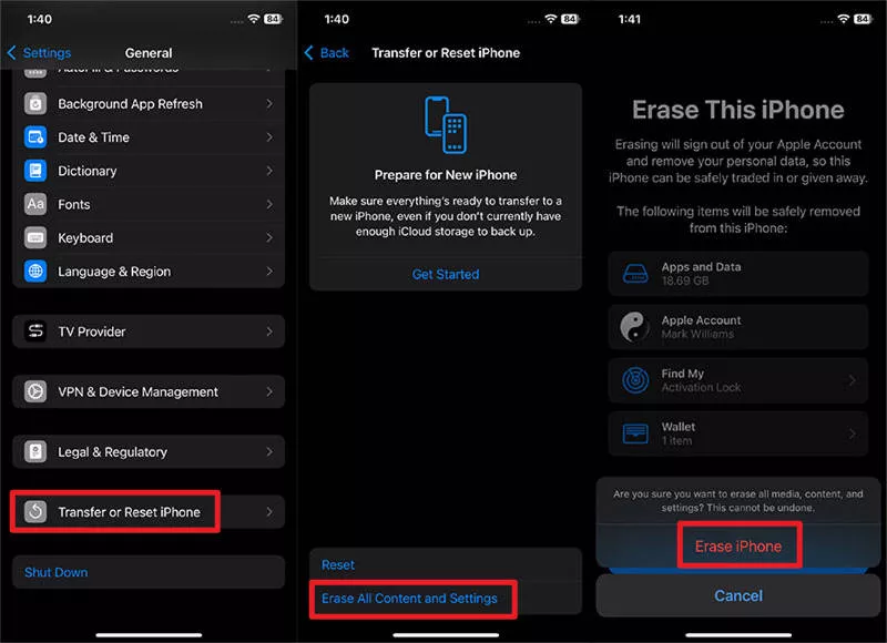 如果您不想使用第三方修復工具,最後的辦法是將 iPhone 重置為出廠設置,以解決“查找我的 iPhone”灰顯的問題。