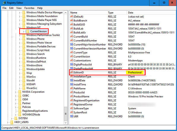 HKEY_LOCAL_MACHINESOFTWAREMicrosoftWindows NTCurrentVersion