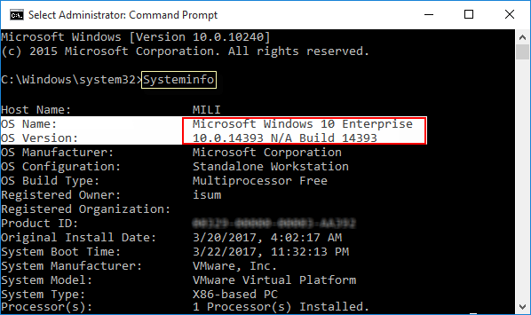 方式三:在命令提示符中查找Windows版本