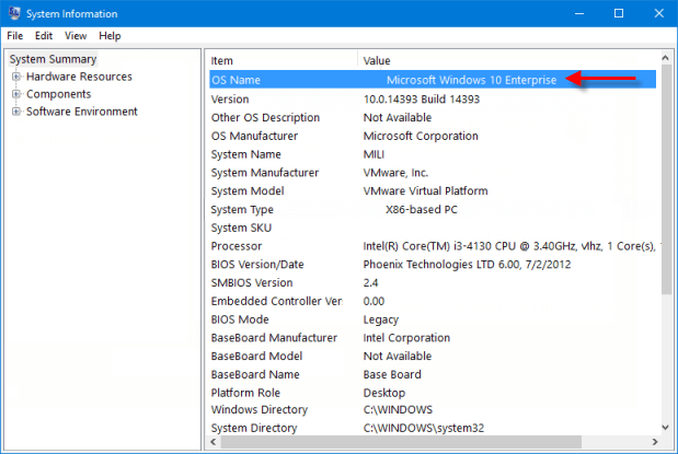 第 2 步:在系統概要,您可以在右側看到您使用的版本操作系統名稱。
