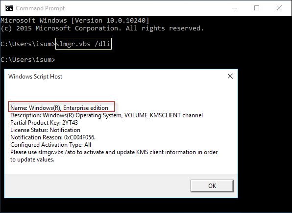 步驟 2:要查找 Windows 版本,請執行以下命令:slmgr.vbs /dli,然後點擊進入。