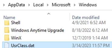 它還可能有助於重置用戶環境設置用戶類.dat文件。只需將文件重命名為%localappdata%MicrosoftWindows folder並登錄 Windows 重新創建該文件或使用 PowerShell: