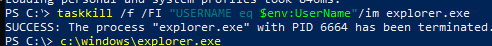 taskkill /f /FI "USERNAME eq $env:UserName"/im explorer.exe